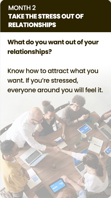 I feel so strongly about my proven system that if you don’t start to feel less stress within the first month, you’ll get your money back guaranteed. But, you have to give it an honest go and complete all the work for month 1.